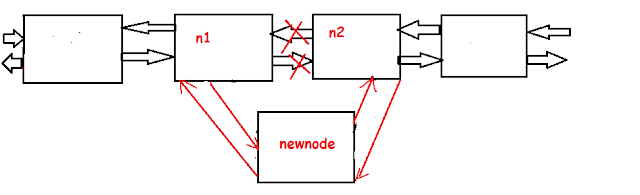 As can be seen from the diagram, we should insert the new node after n1. If n2 was the node next to n1, even this n2 should be linked to n1.